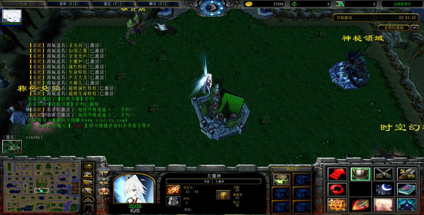 地图名字:光明VS黑暗4 1.0.50地图下载+无CD无限蓝P闪+商城特权+刷物品+指令功能