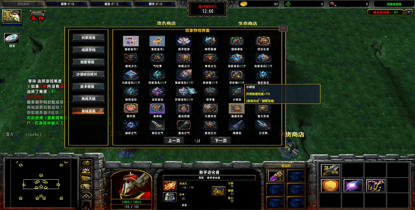 地图名字:暴走进化者2.0.8地图下载+无CD无限蓝P闪+商城特权+刷物品+指令功能