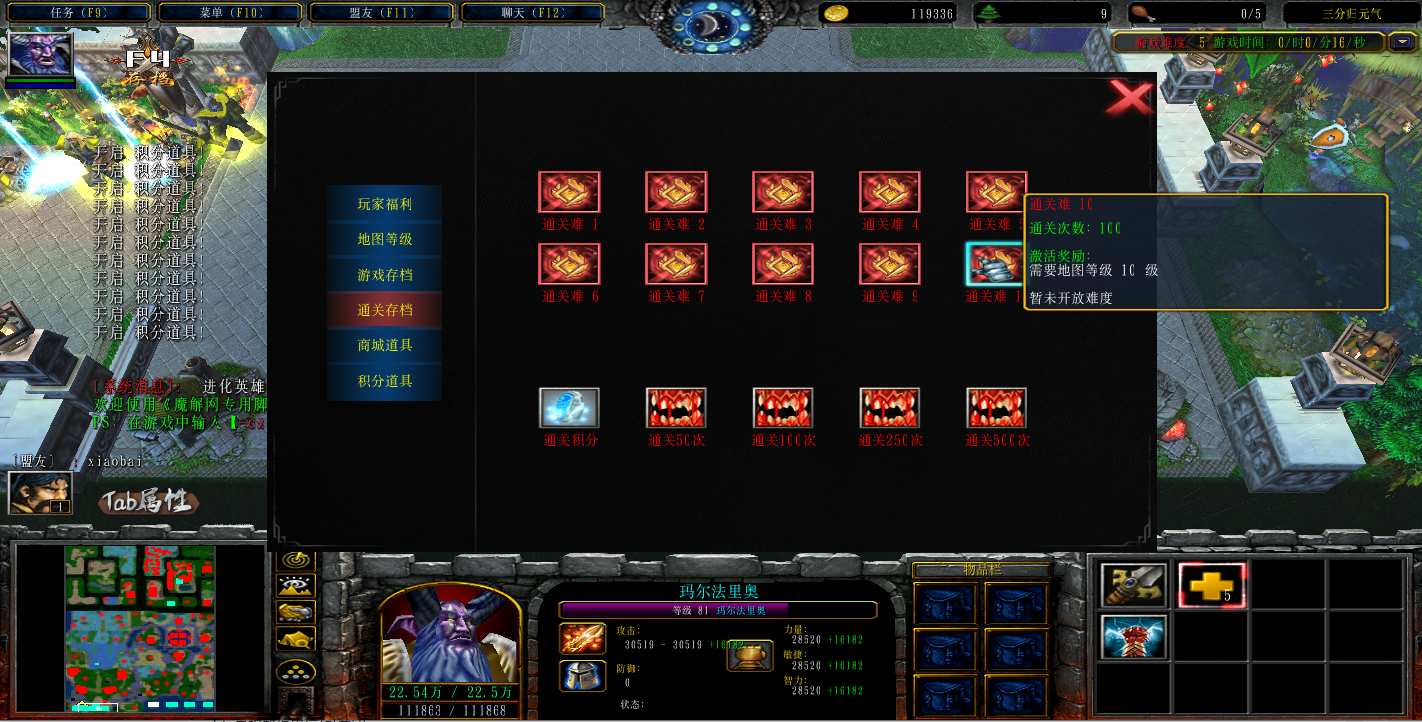 地图名字:三分归元气1.0.122地图下载+全商城特权+全存档+隐藏英雄+无CD+指令功能