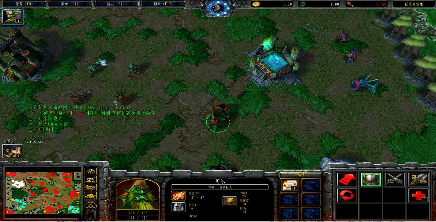 地图名字:精灵之森三人战役1.0.2地图下载+无CD无限蓝P闪+刷物品+指令功能