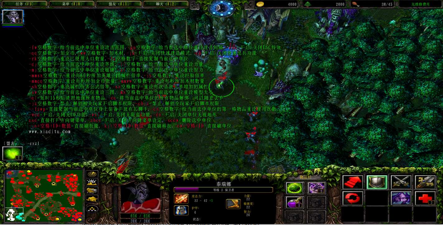 地图名字:丛林精灵双人战役1.0.4地图下载+无CD无限蓝P闪+刷物品+指令功能