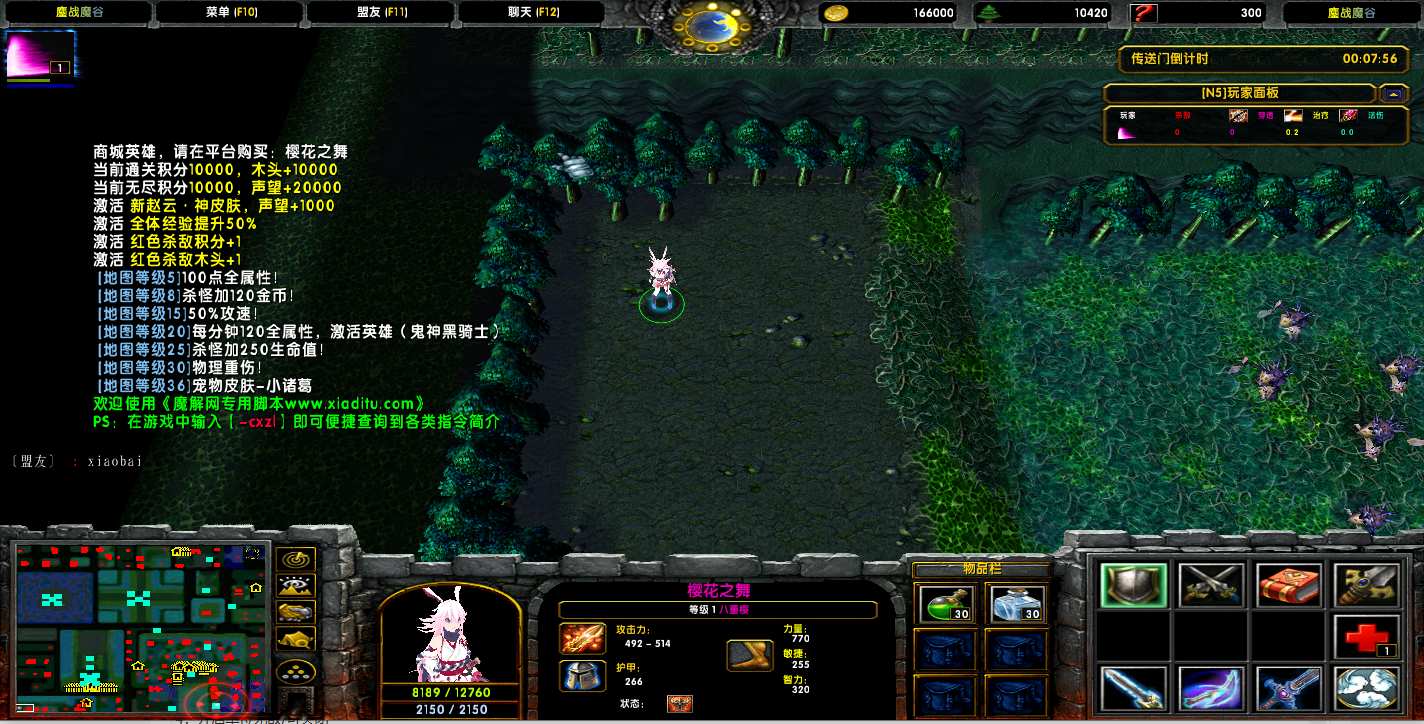 地图名字:鏖战魔谷1.5.5地图下载+全商城特权+全存档+隐藏英雄+无CD+指令功能
