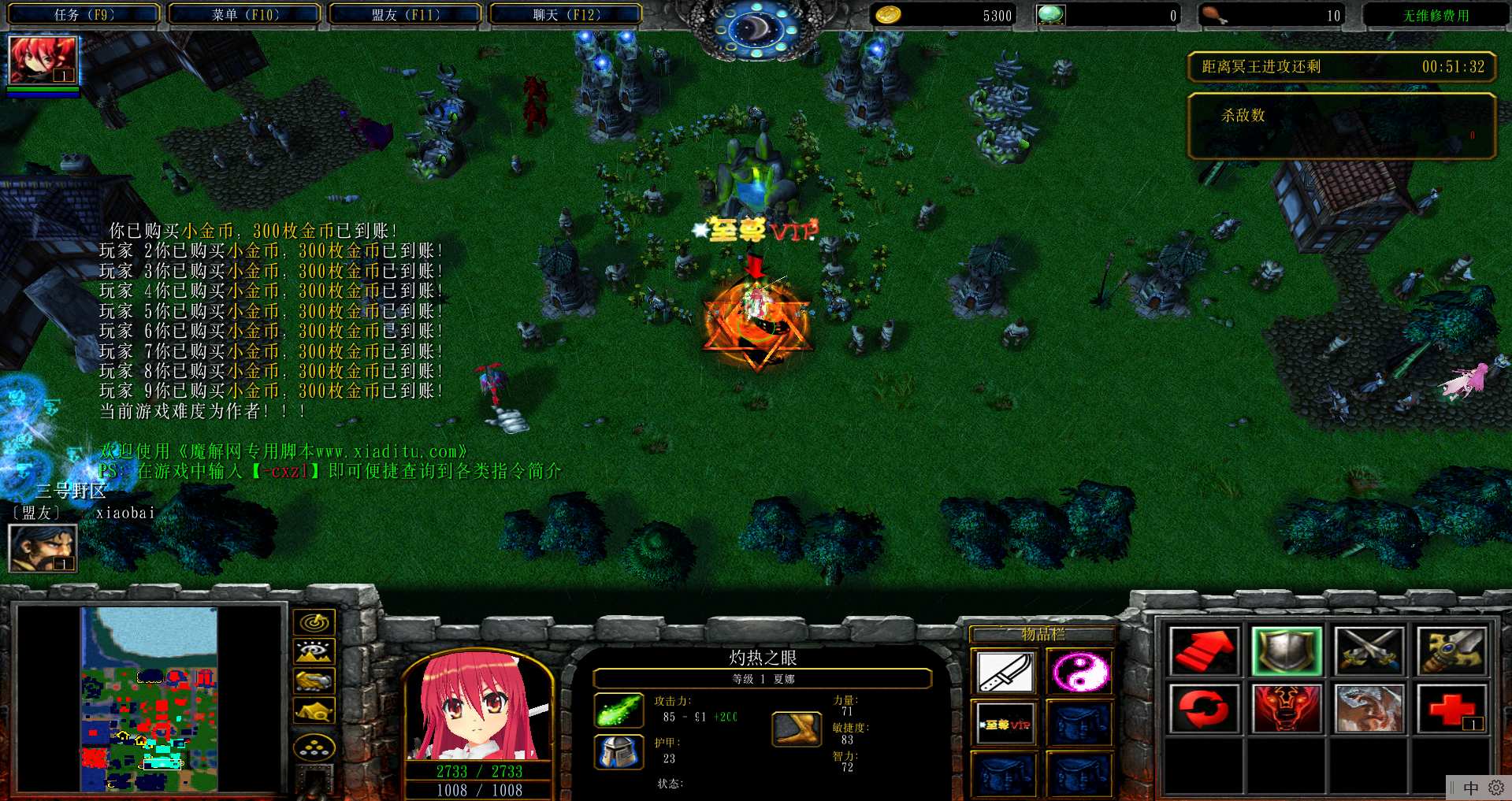 地图名字:非常难的英雄守城奥义2.4.2地图下载+无CD无限蓝P闪+商城特权+刷物品+指令功能