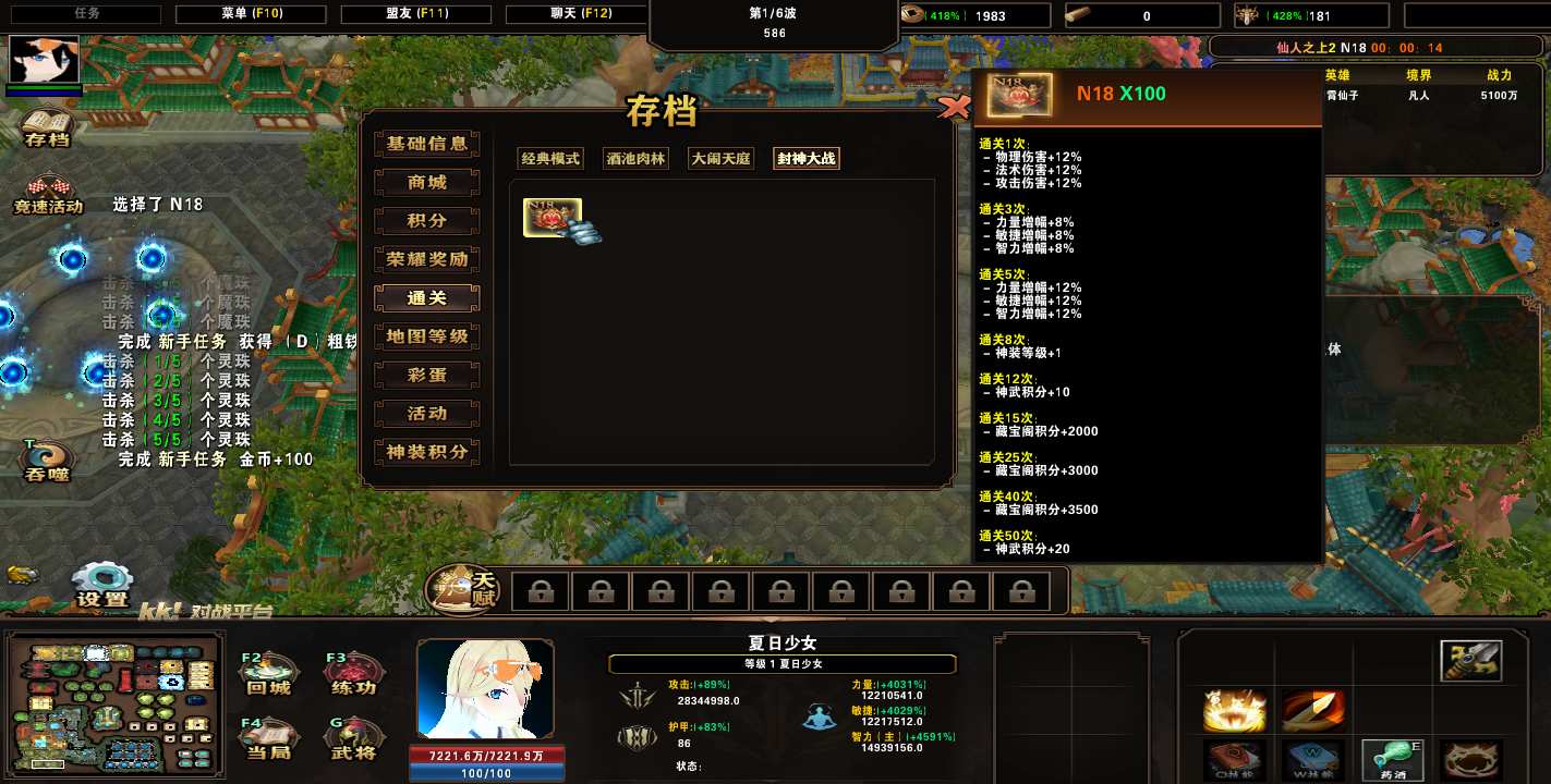 地图名字:仙人之上2 1.0.95地图下载+全商城特权+全存档+隐藏英雄+无CD+指令功能