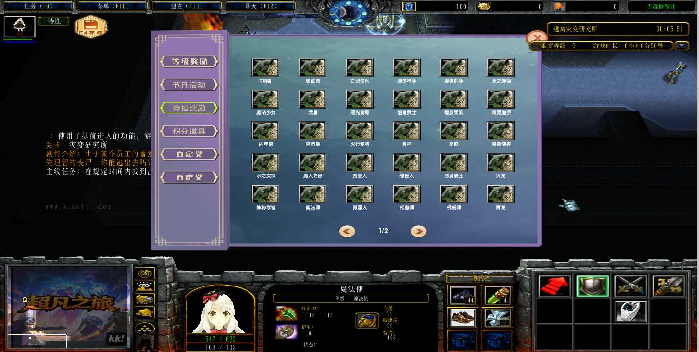 地图名字:超凡之旅1.0.73地图下载+全商城特权+全存档+隐藏英雄+无CD+指令功能