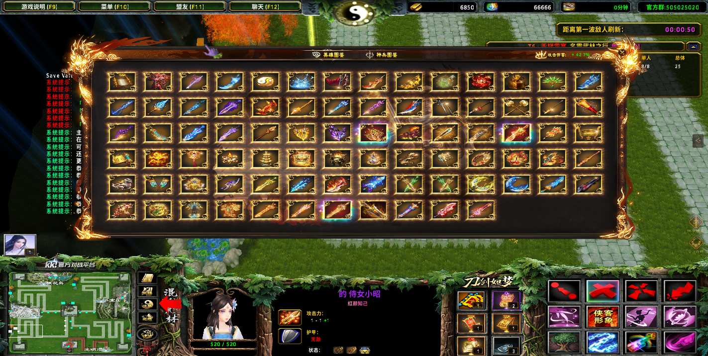 地图名字:混乱武林TD刀剑如梦7.0.55地图下载+全商城特权+全存档+隐藏英雄+无CD+指令功能