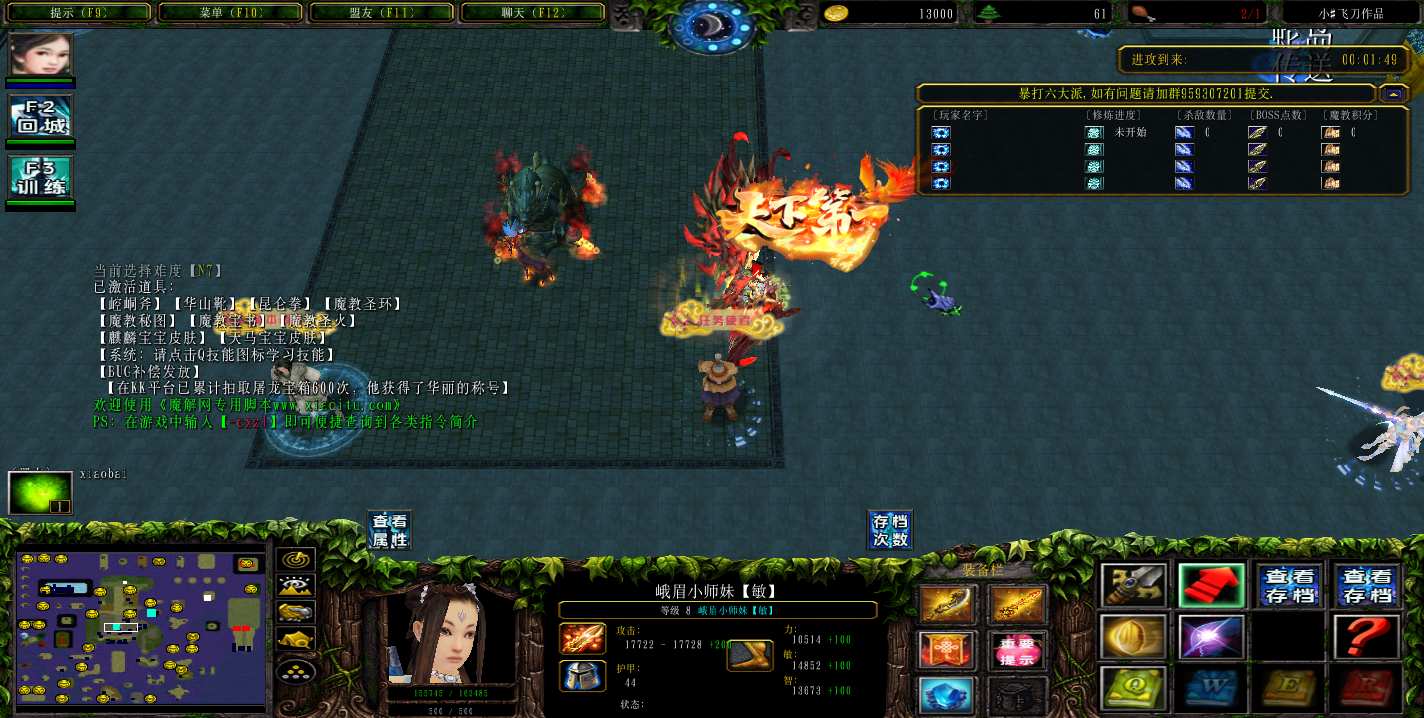 地图名字:暴打六大派3.0.0地图下载+全商城特权+全存档+隐藏英雄+无CD+指令功能