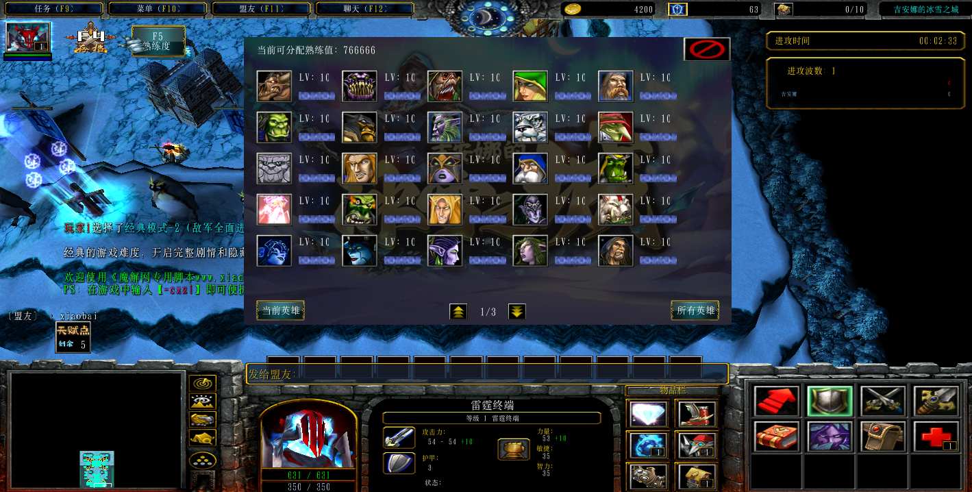 地图名字:吉安娜的冰雪之城2.1.6地图下载+全商城特权+全存档+隐藏英雄+无CD+指令功能