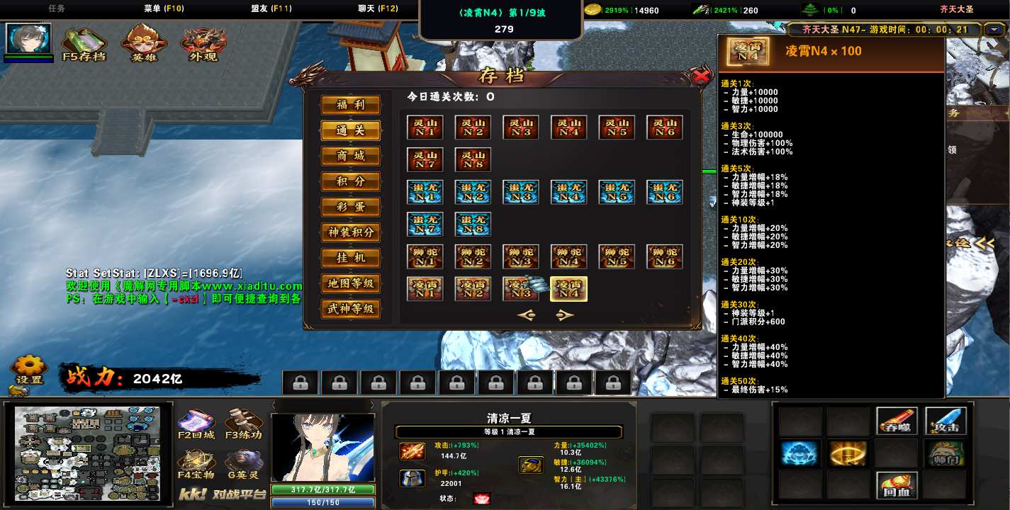 地图名字:齐天大圣1.0.329地图下载+全商城特权+全存档+隐藏英雄+无CD+指令功能