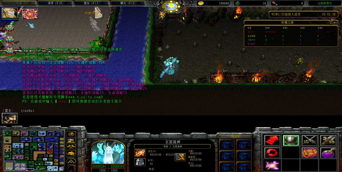 地图名字:斩魔之路1.1.11地图下载+无CD无限蓝P闪+商城特权+刷物品+指令功能