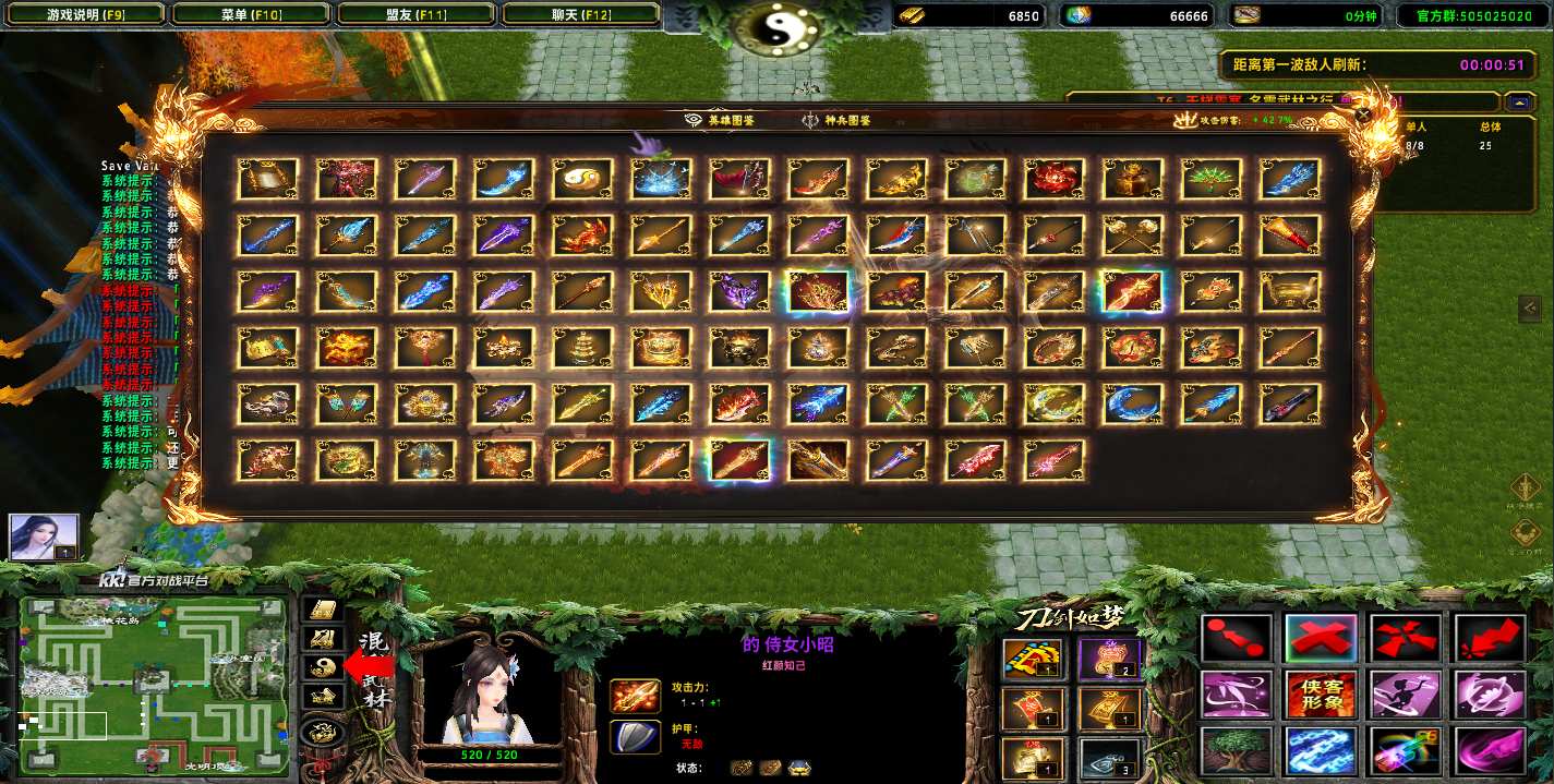 地图名字:混乱武林TD刀剑如梦7.0.56地图下载+全商城特权+全存档+隐藏英雄+无CD+指令功能