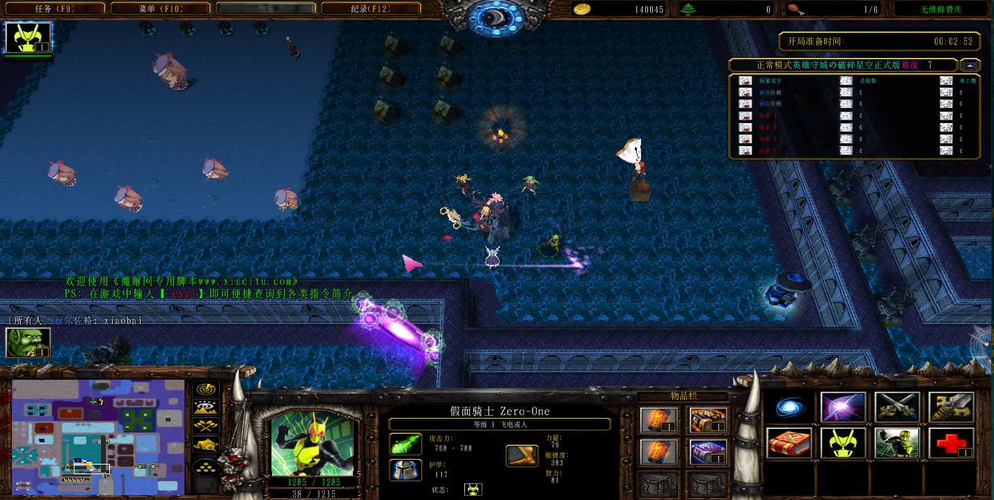 地图名字:英雄守城の破碎星空3.9.669地图下载+无CD无限蓝P闪+刷物品+指令功能