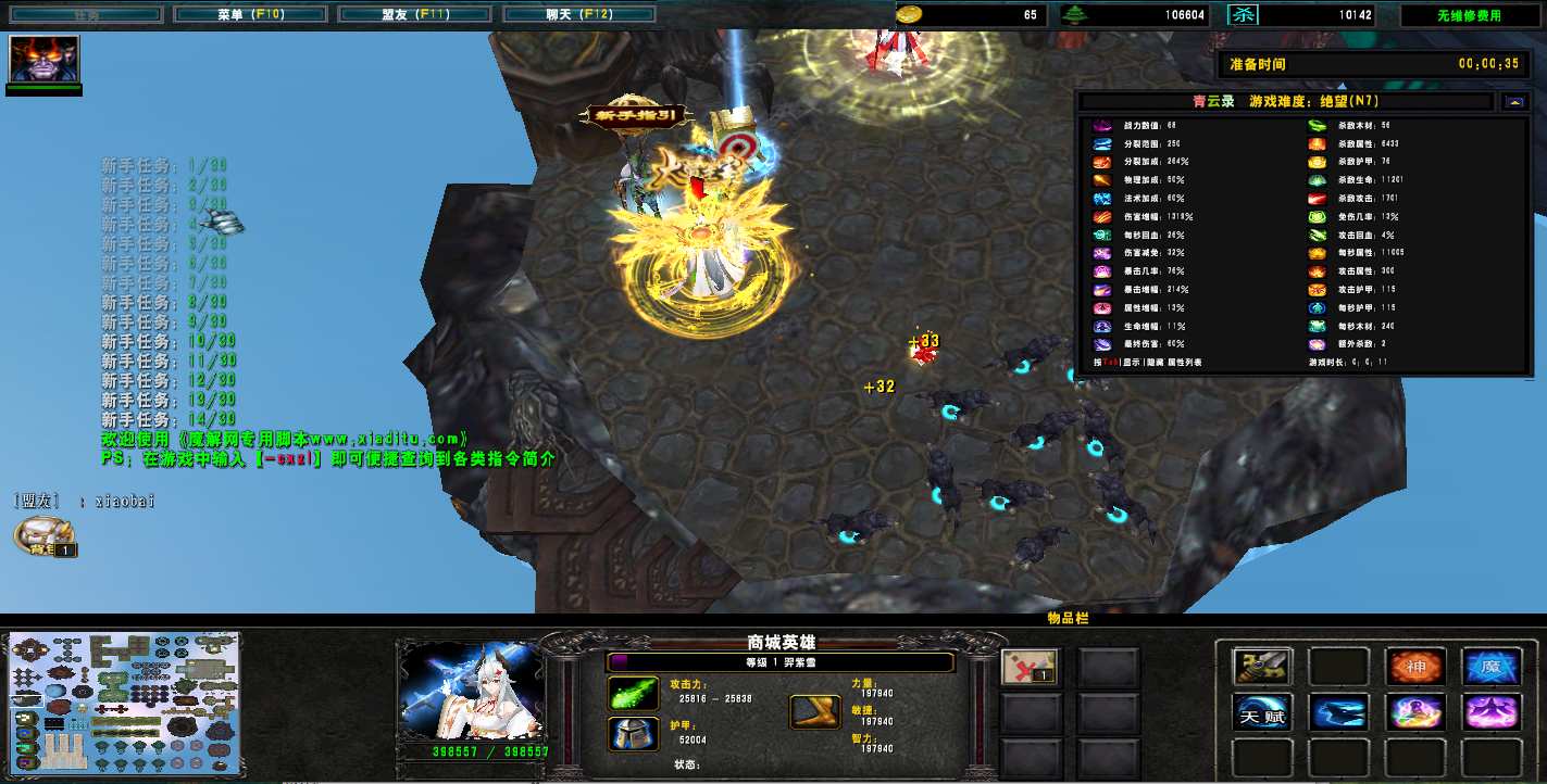 | 技能菜单【光环类技能】 | 自动化菜单【自动加钱木,提升英雄三围】 |