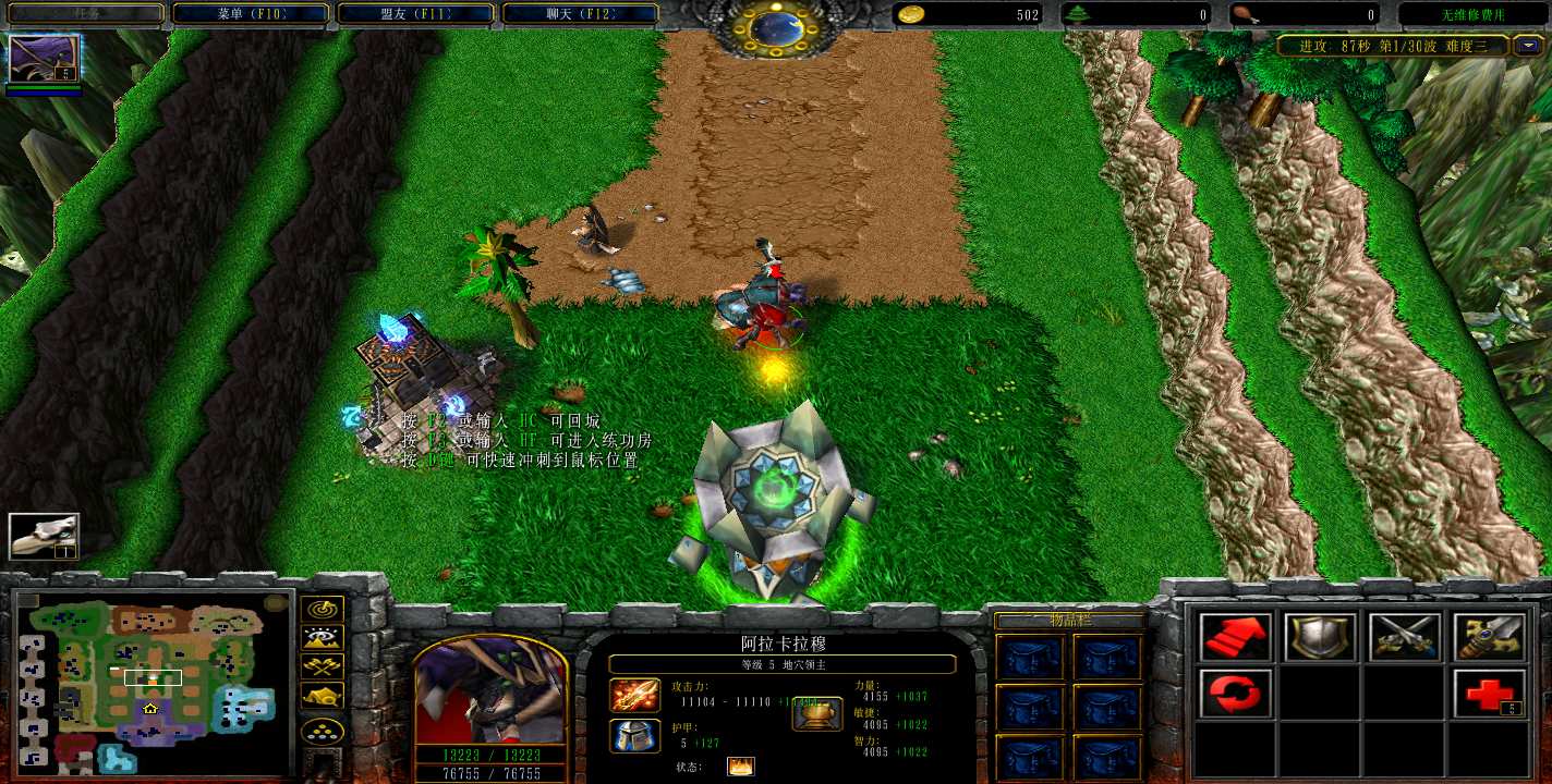地图名字:魔兽变态防守1.0.2地图下载+无CD无限蓝P闪+商城特权+刷物品+指令功能