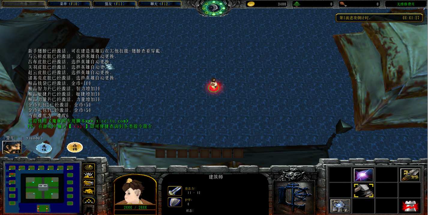 地图名字:三国屯田生存1.1.0地图下载+无CD无限蓝P闪+商城特权+刷物品+指令功能