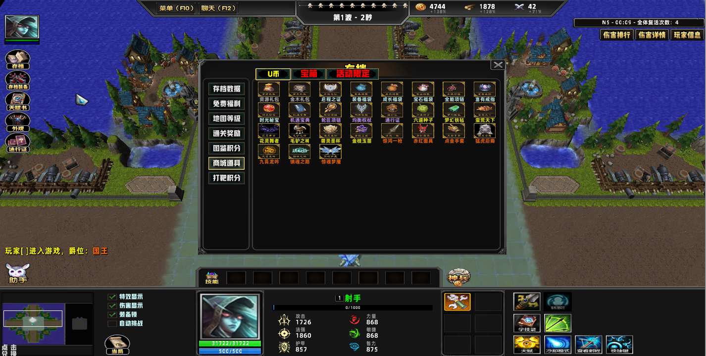 | 技能菜单【光环类技能】 | 自动化菜单【自动加钱木,提升英雄三围】 |