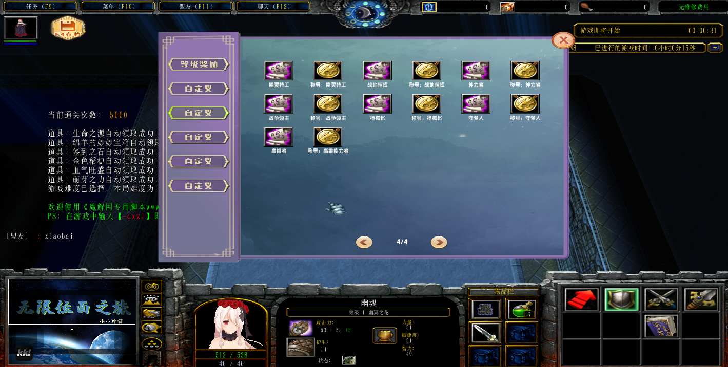 地图名字:无限位面之旅1.9.89地图下载+全商城特权+全存档+隐藏英雄+无CD+指令功能