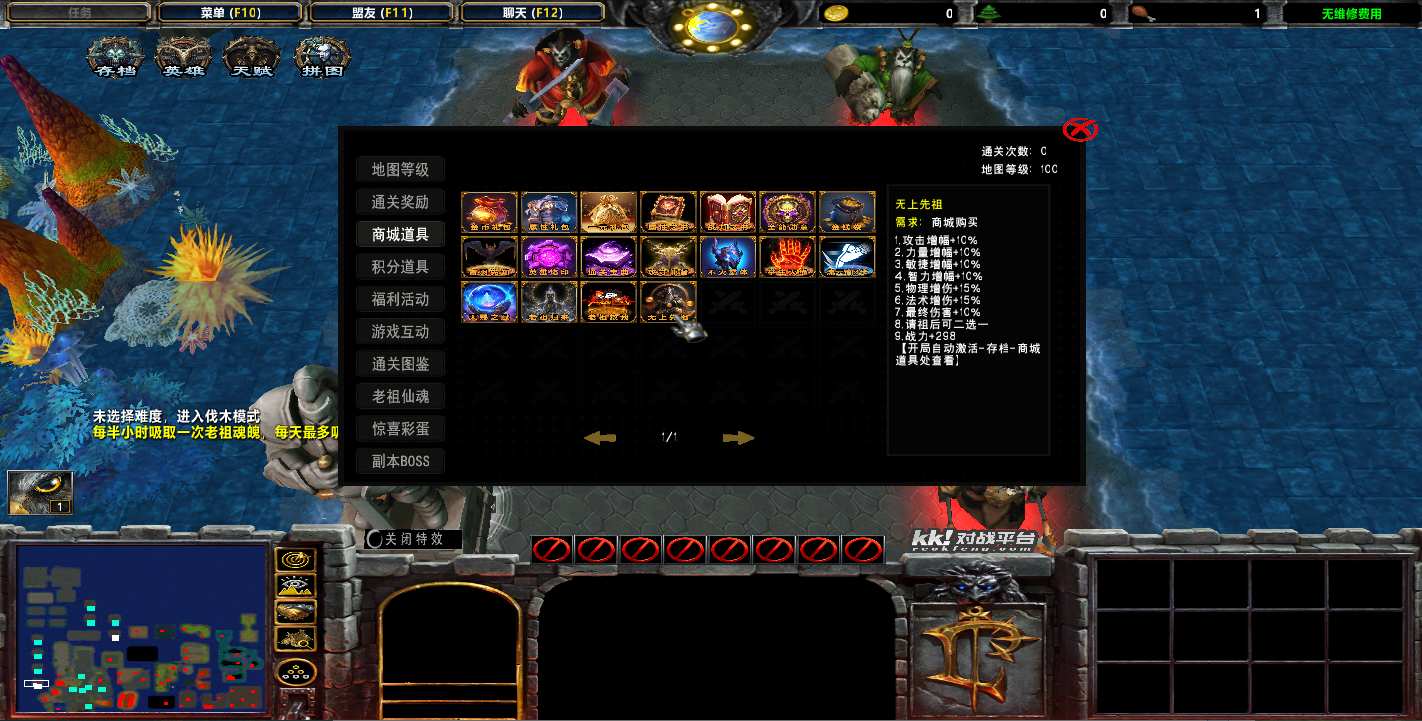地图名字:孤岛英雄防御战1.0.3地图下载+无CD无限蓝P闪+商城特权+刷物品+指令功能
