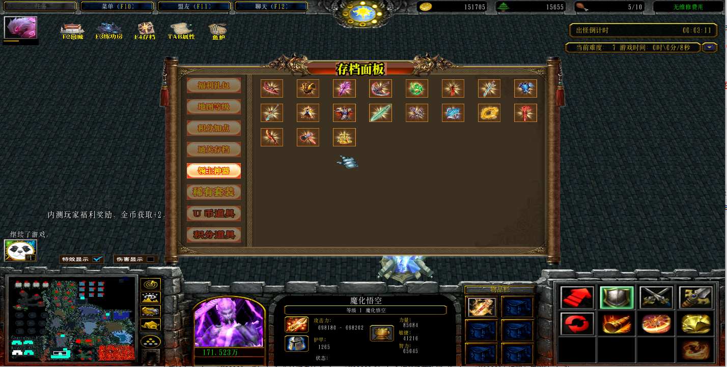 地图名字:逆天仙缘1.2.1地图下载+全商城特权+全存档+隐藏英雄+无CD+指令功能