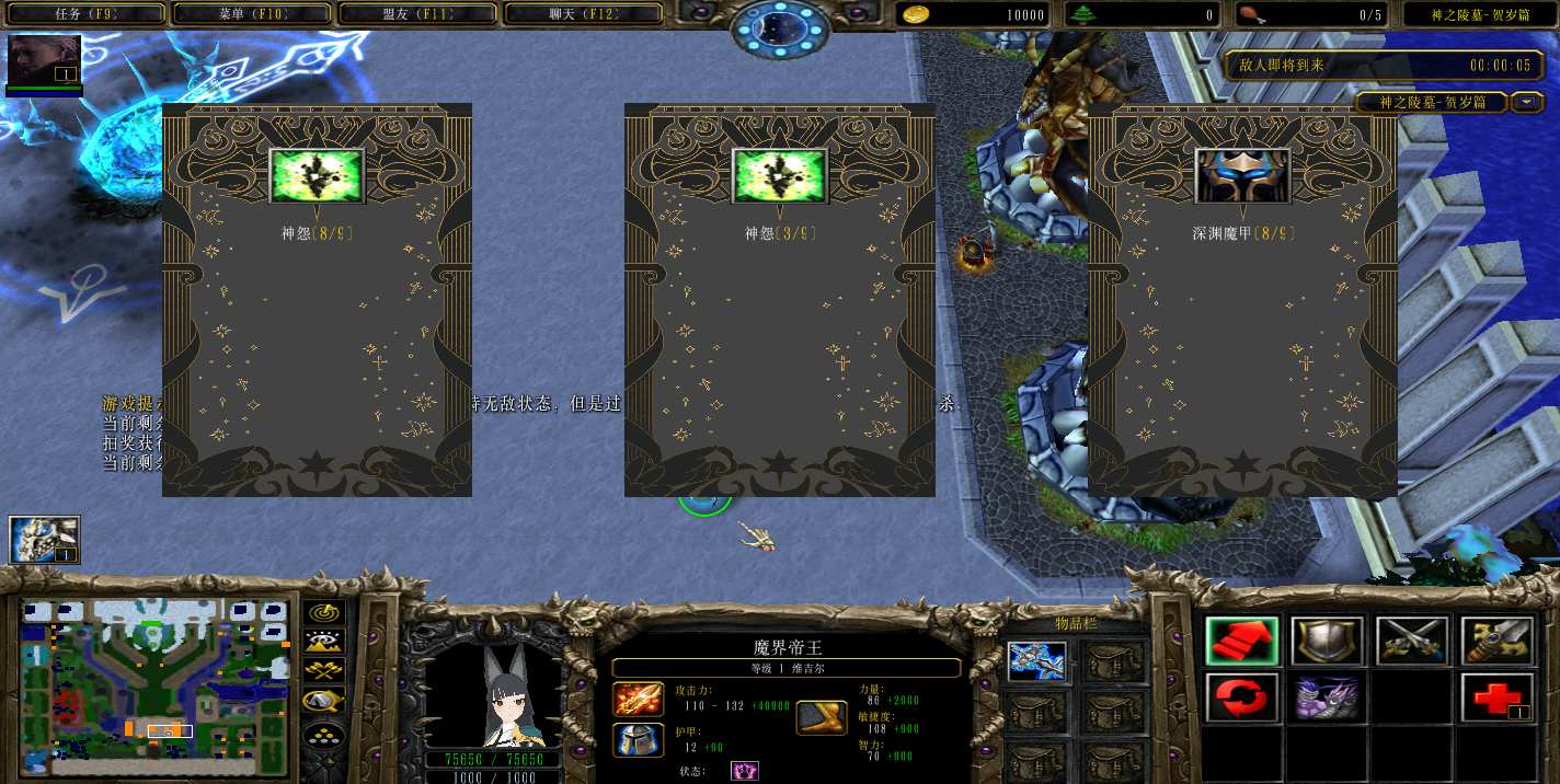 地图名字:神之陵墓贺岁版2.7.5地图下载+全商城特权+抽奖模式+隐藏英雄+无CD+指令功能
