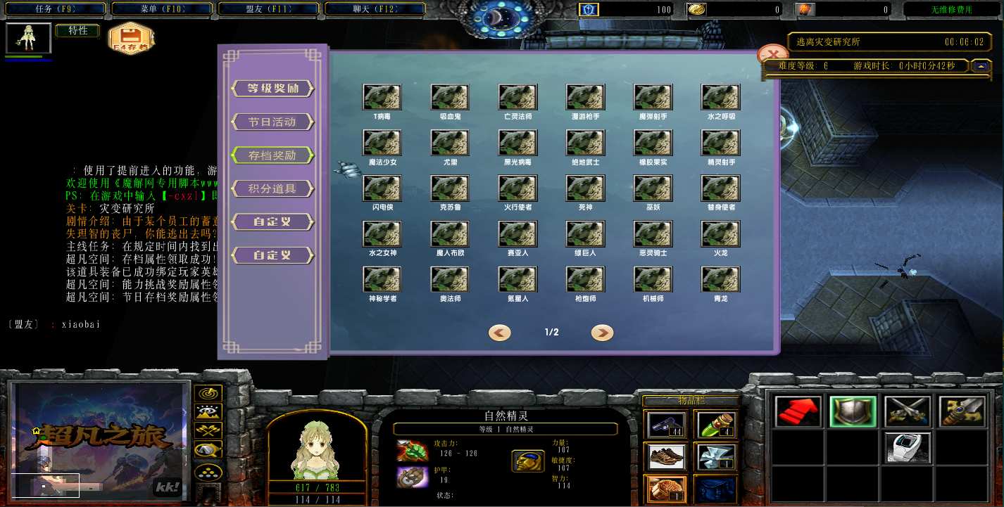 地图名字:超凡之旅1.0.81地图下载+全商城特权+全存档+隐藏英雄+无CD+指令功能
