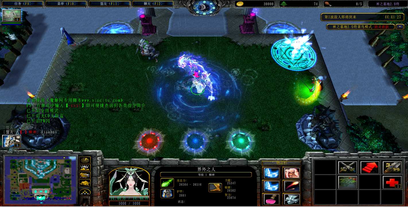 地图名字:神之墓地2.9终1.4.44地图下载+全商城特权+隐藏英雄+无CD+指令功能