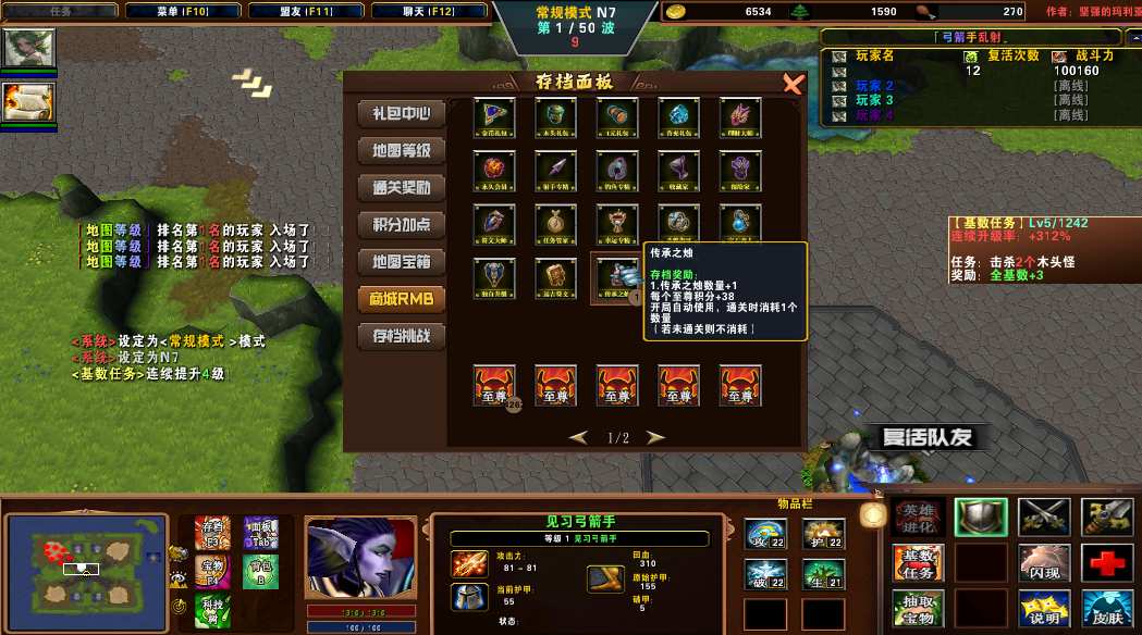 地图名字:弓箭手乱射1.0.8地图下载+无CD无限蓝P闪+商城特权+刷物品+指令功能