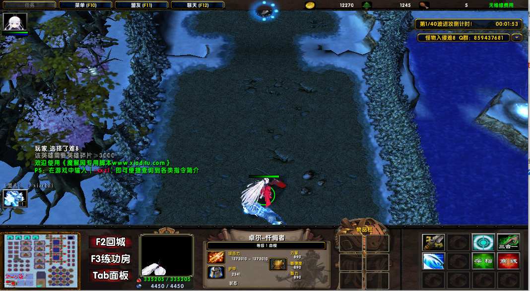 地图名字:怪物入侵1.1.0地图下载+无CD无限蓝P闪+商城特权+刷物品+指令功能