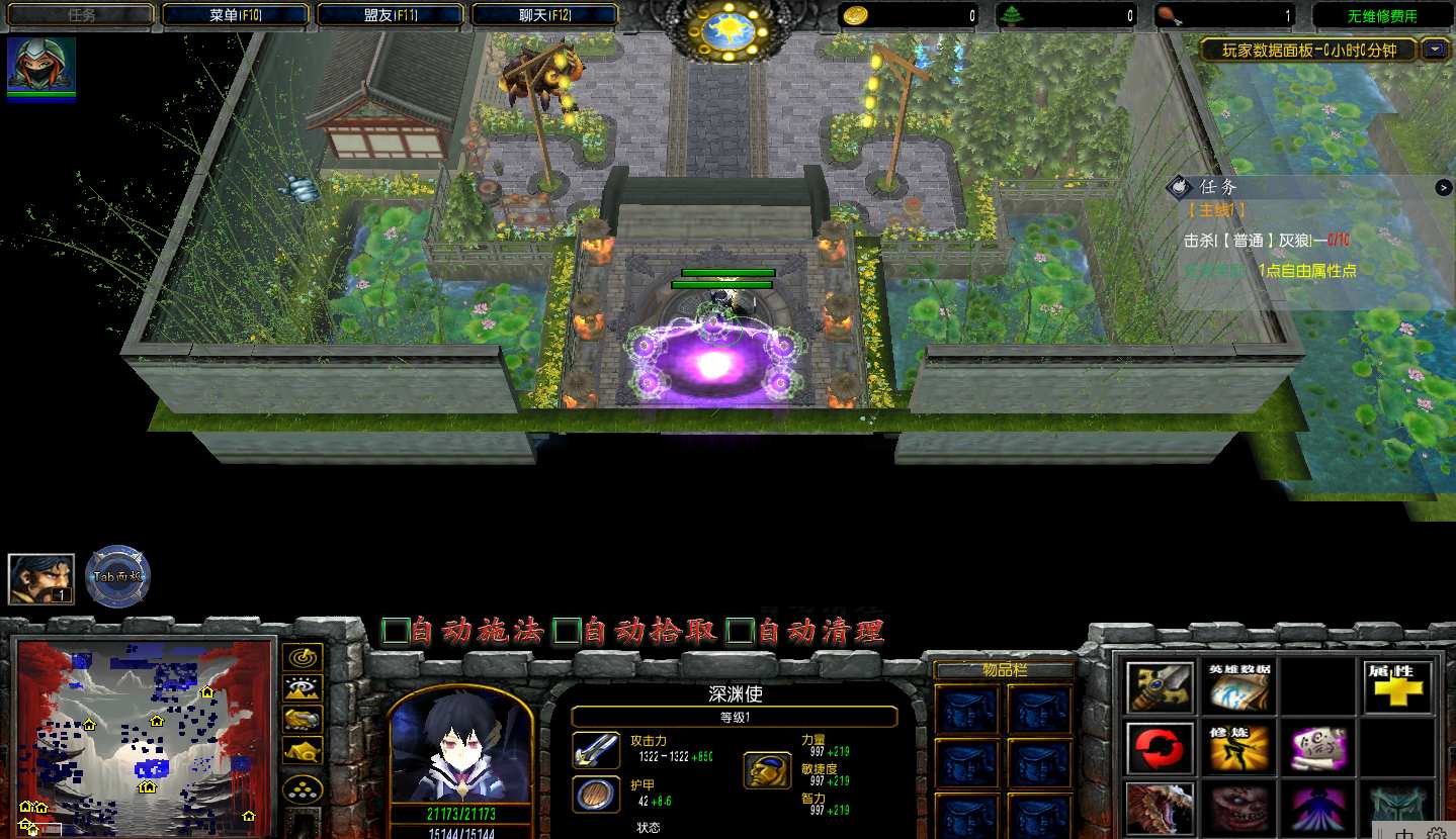技能菜单【光环类技能】自动化菜单【自动加钱木,提升英雄三围】