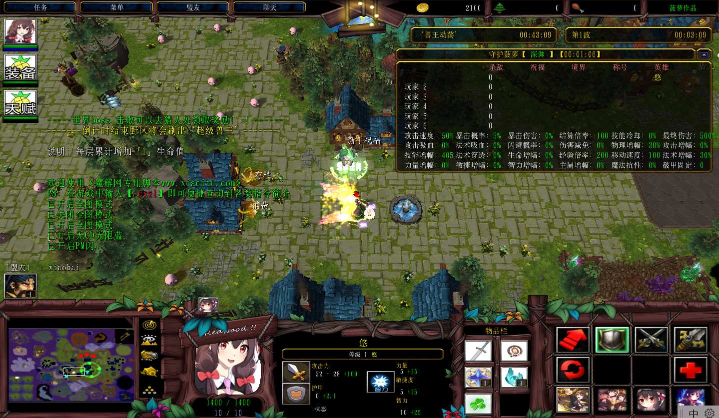 守护菠萝2.8.0地图下载+无CD无限蓝P闪+商城特权+刷物品+指令功能: