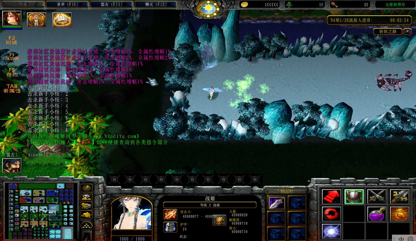 地图名字:斩妖之路1.1.16地图下载+无CD无限蓝P闪+商城特权+刷物品+指令功能
