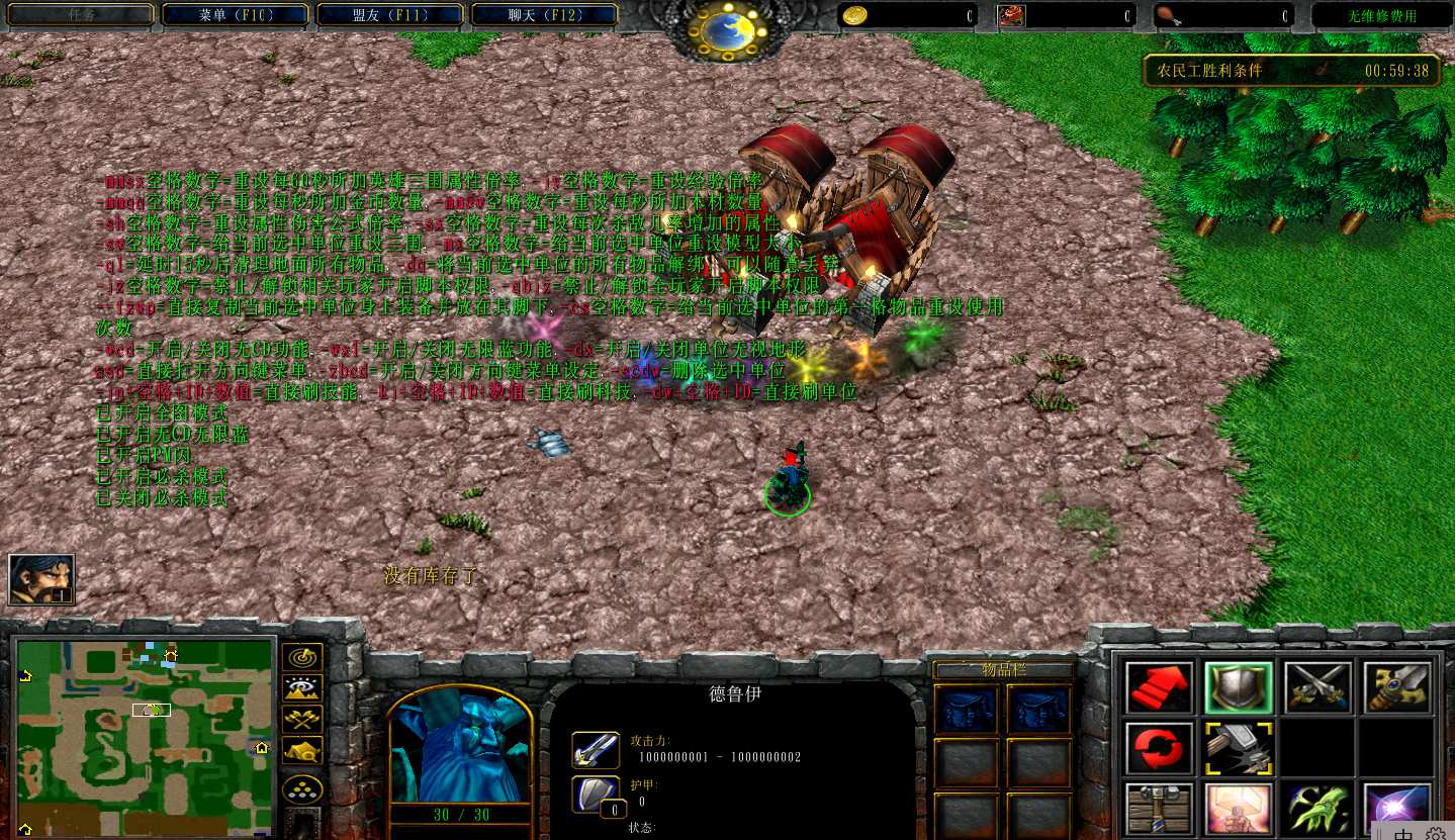 地图名字:地主大战农民工III1.0.0地图下载+无CD无限蓝P闪+刷物品+指令功能