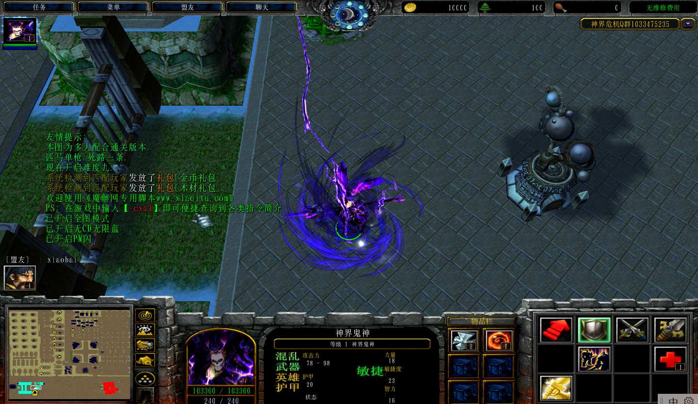 神界危机魔王重生3.7.0地图下载+无CD无限蓝P闪+商城特权+刷物品+指令功能:
