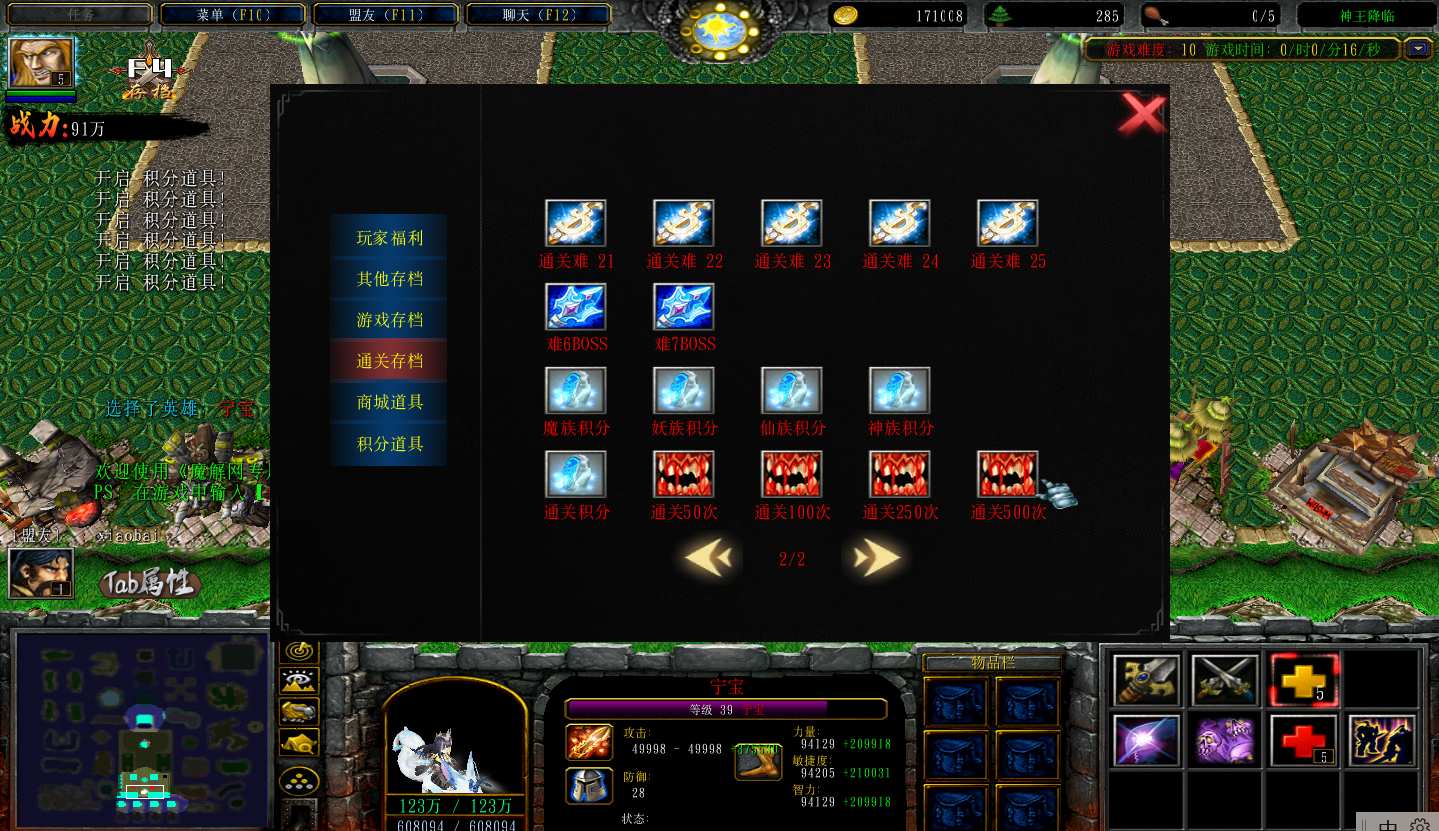 地图名字:神王降临1.0.235地图下载+全商城特权+全存档+隐藏英雄+无CD+指令功能