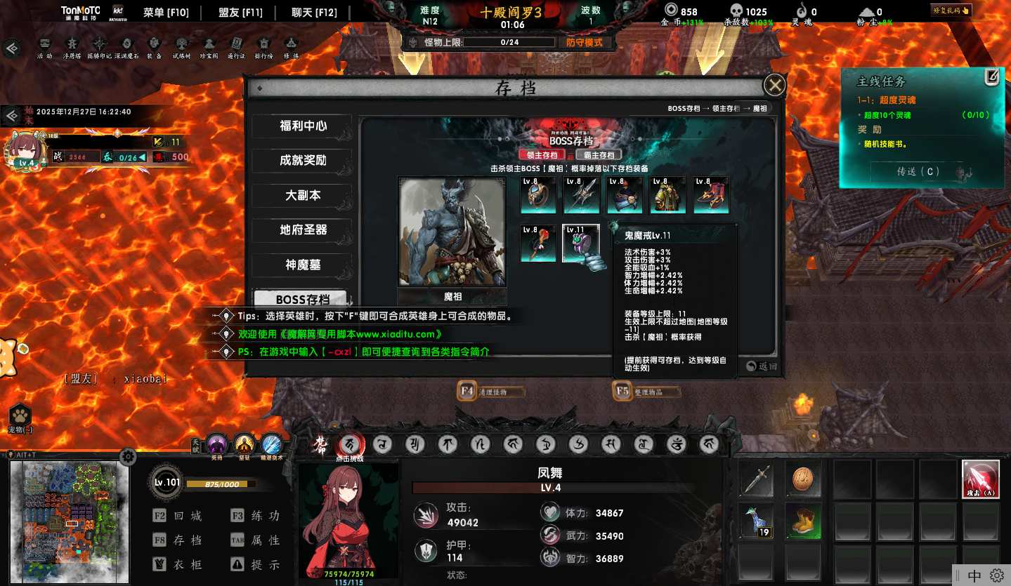 地图名字:十殿阎罗3 2.6.6地图下载+全商城特权+全存档+隐藏英雄+无CD+指令功能