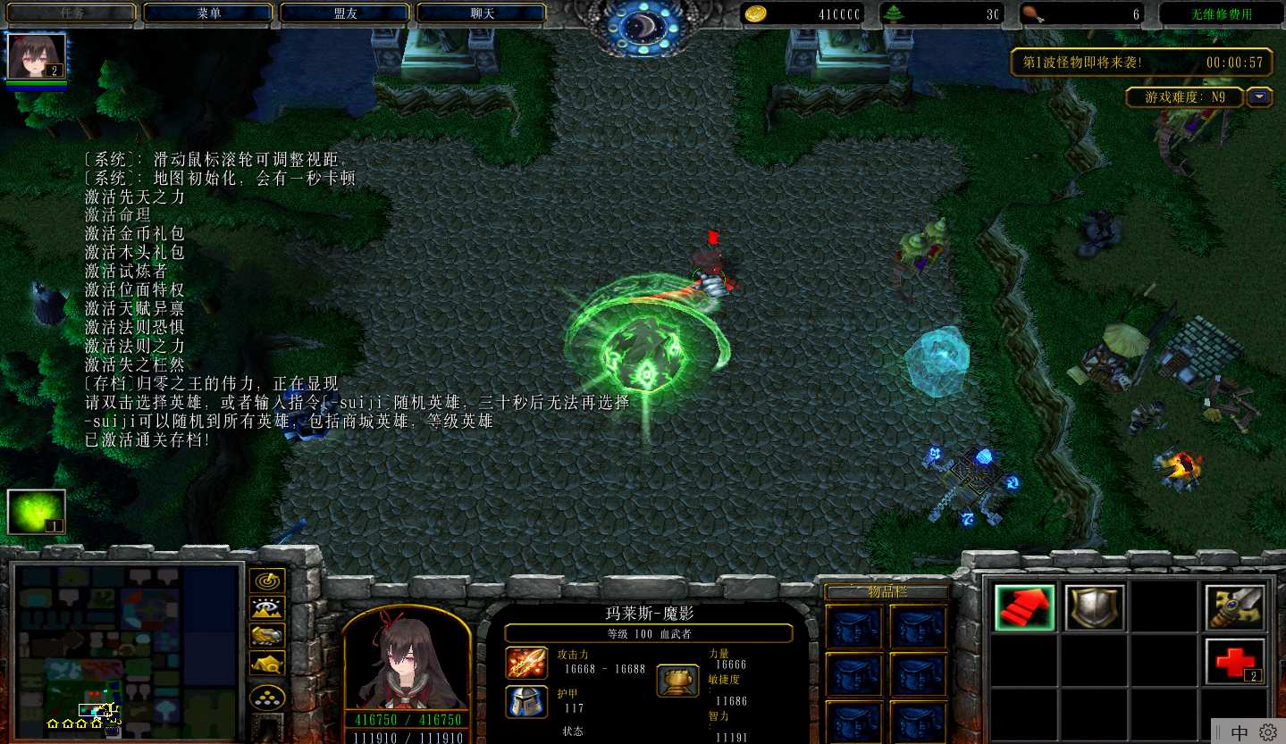 地图名字:天道之境1.0.44地图下载+全商城特权+全存档+隐藏英雄+无CD+指令功能