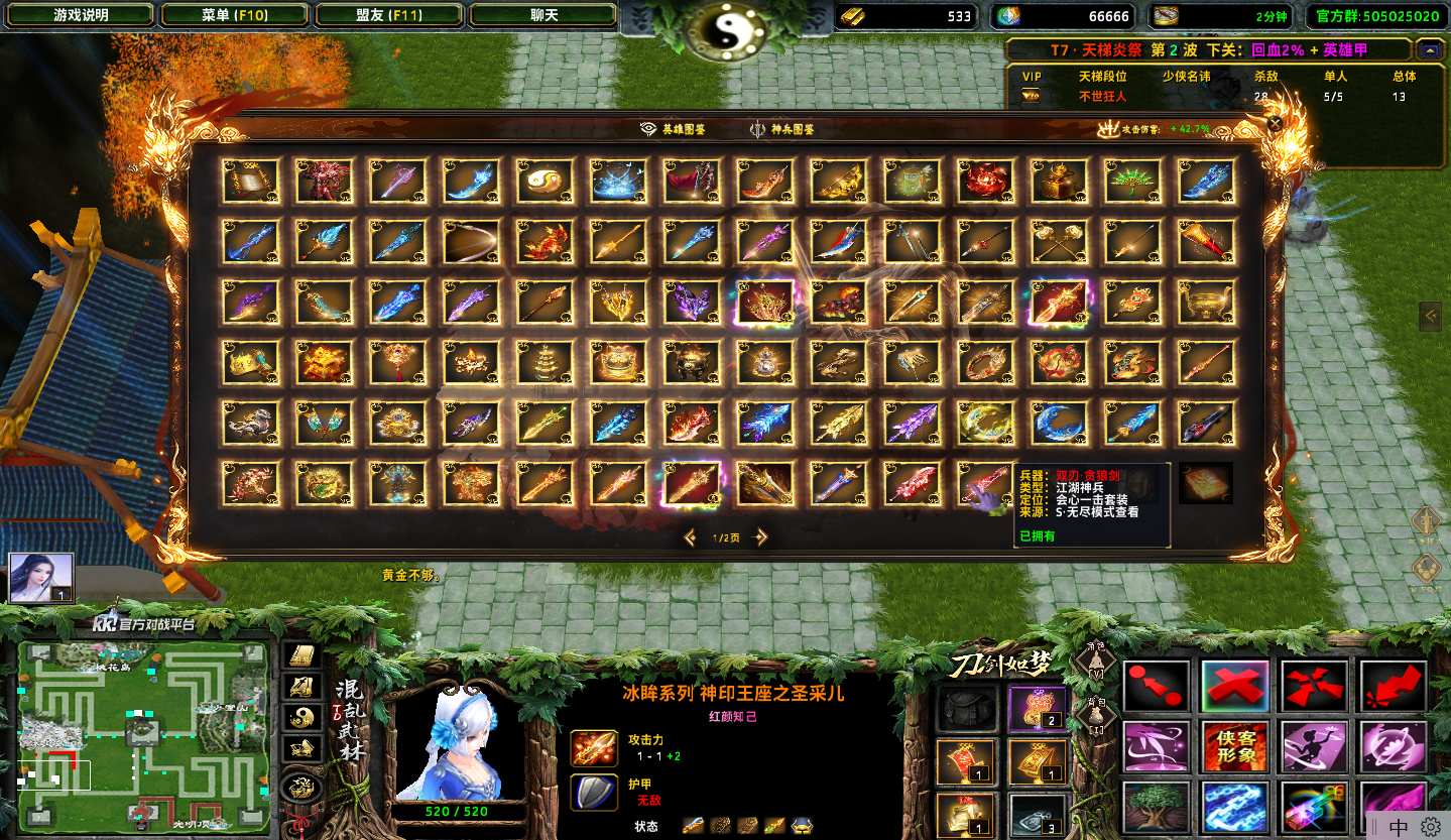 地图名字:混乱武林TD刀剑如梦7.0.95地图下载+全商城特权+存档+隐藏英雄+无CD+指令功能