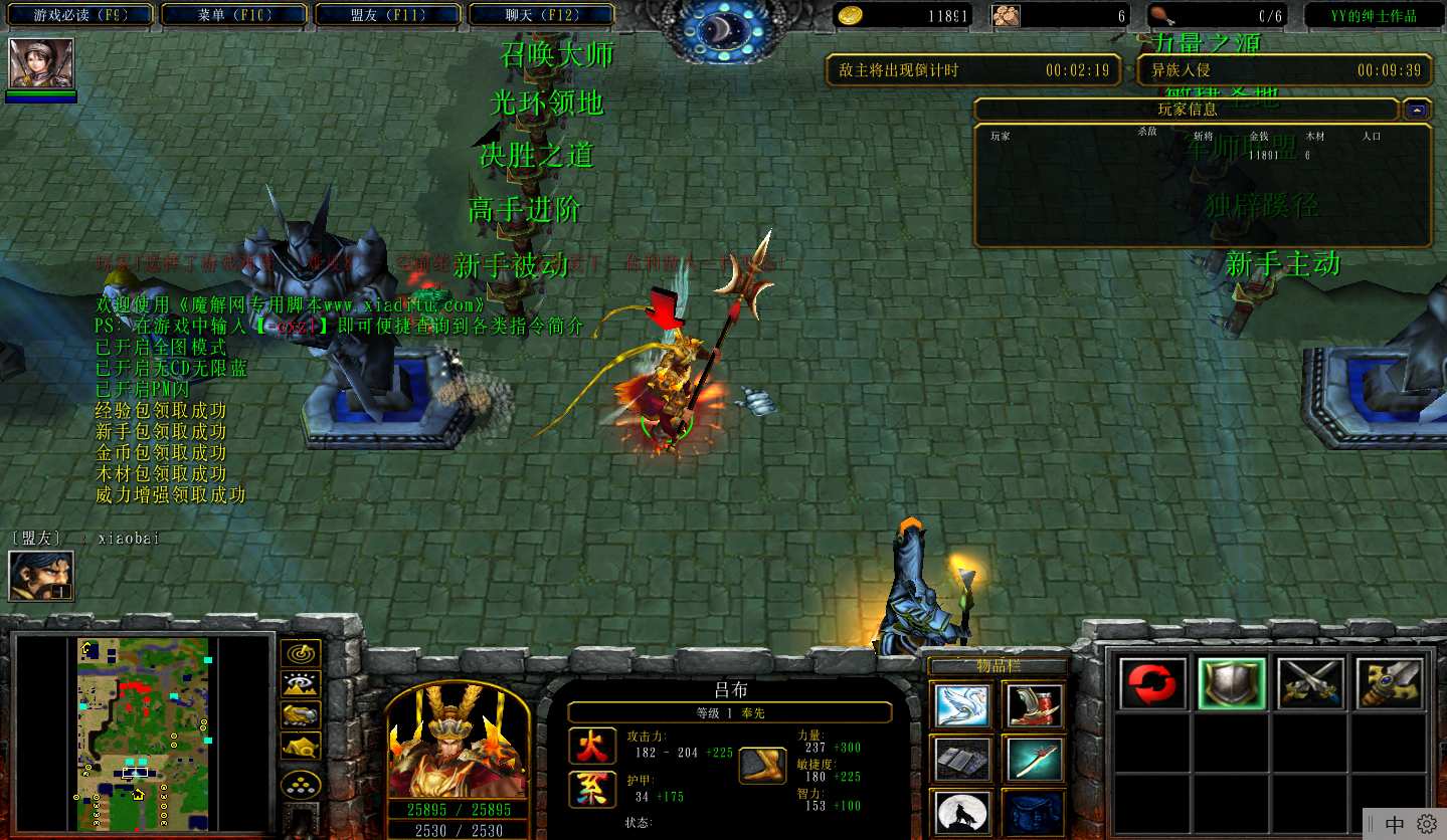 地图名字:守卫剑阁自定义英雄1.5.182地图下载+全商城特权+全存档+隐藏英雄+无CD+指令功能