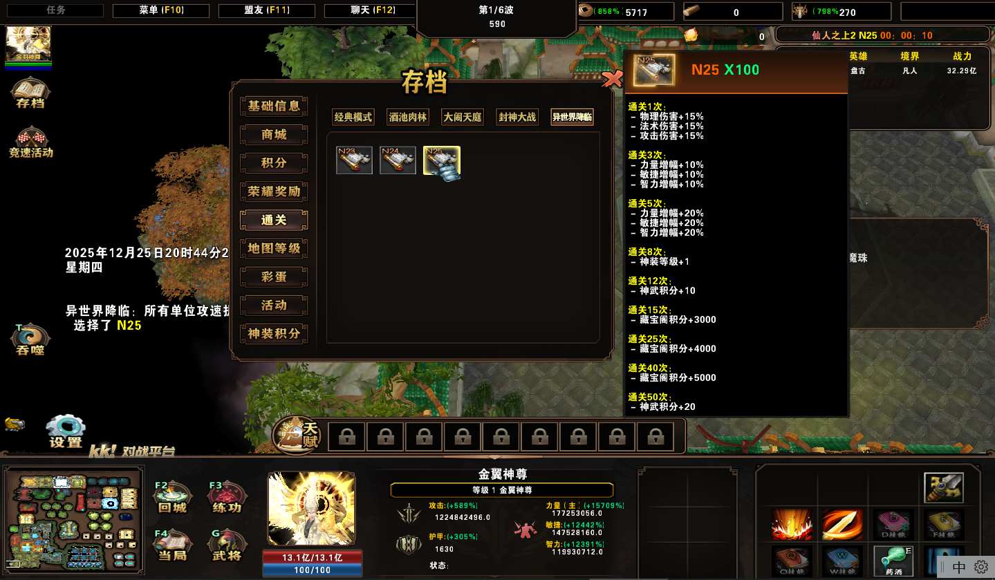 地图名字:仙人之上2 1.1.62地图下载+全商城特权+全存档+隐藏英雄+无CD+指令功能