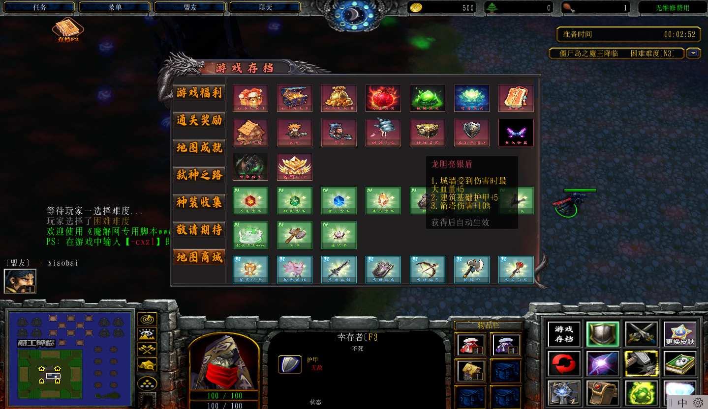 地图名字:僵尸岛之魔王降临1.1.0地图下载+无CD无限蓝P闪+商城特权+刷物品+指令功能