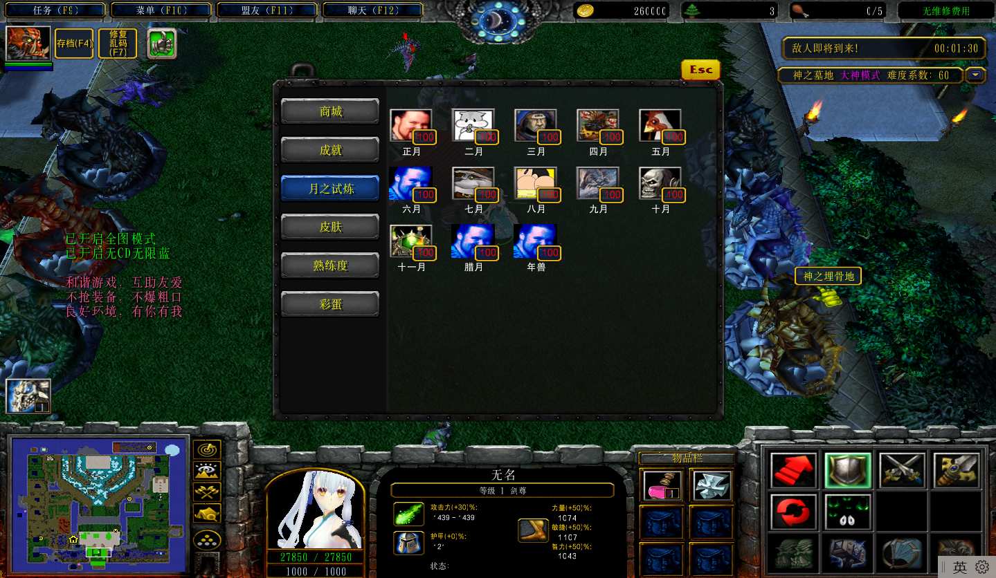 地图名字:神之墓地2.9.177地图下载+全商城特权+全存档+无CD+指令功能