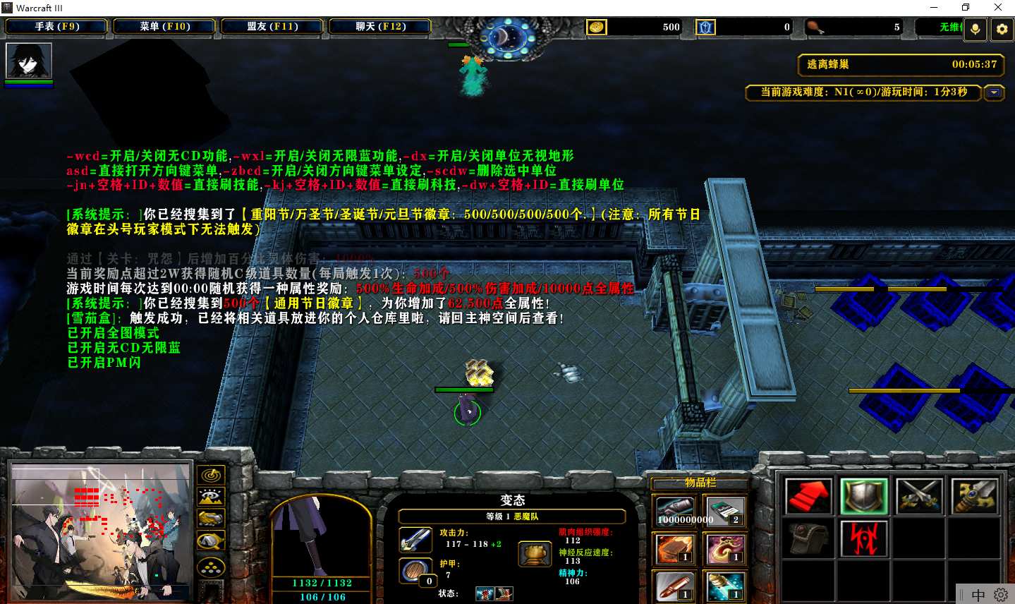 地图名字:无限恐怖之再现2.1.31地图下载+全商城特权+全存档+隐藏英雄+无CD+指令功能