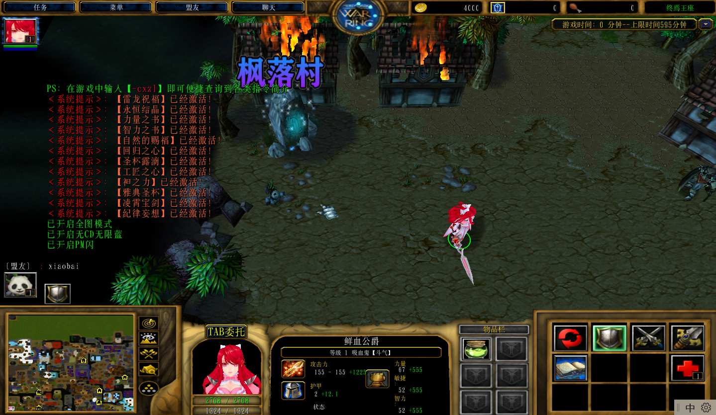 终焉王座1.2.4地图下载+无CD无限蓝P闪+商城特权+刷物品+指令功能:
