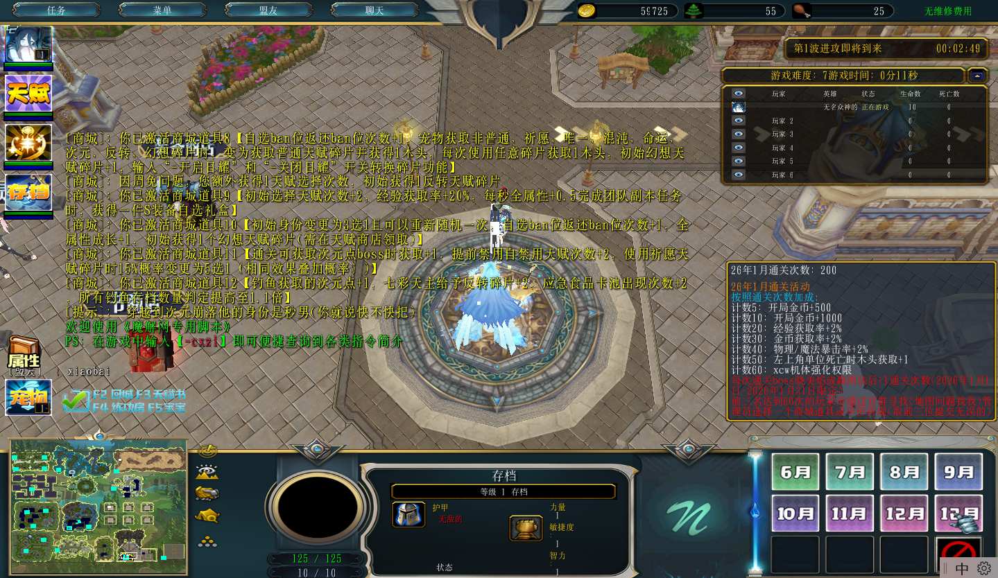 地图名字:次元崩落2.0.284地图下载+全商城特权+全存档+隐藏英雄+无CD+指令功能