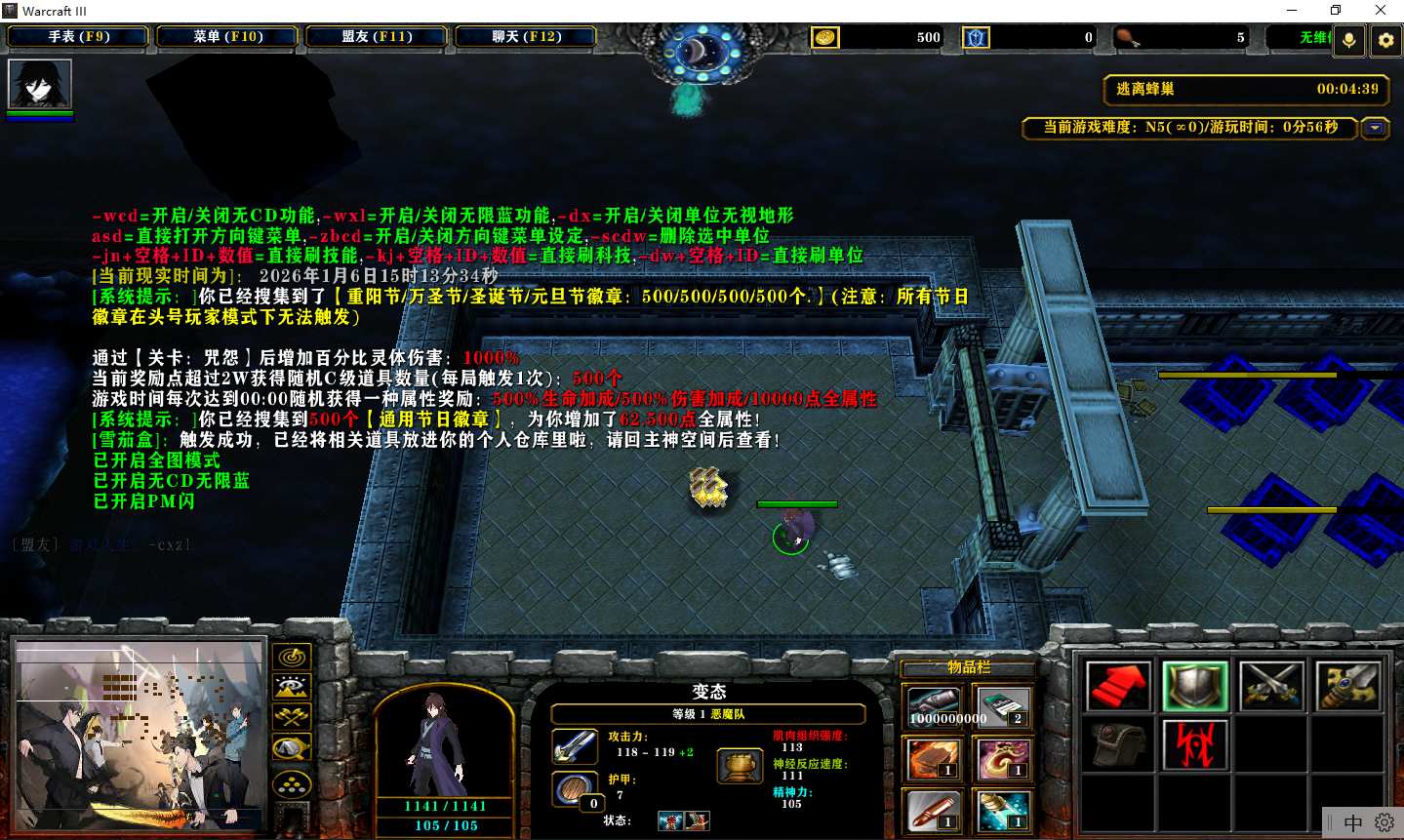 地图名字:无限恐怖之再现2.1.32地图下载+全商城特权+全存档+隐藏英雄+无CD+指令功能