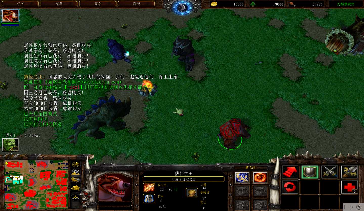 地图名字:保卫野怪之驱逐之战1.0.3地图下载+无CD无限蓝P闪+商城特权+刷物品+指令功能