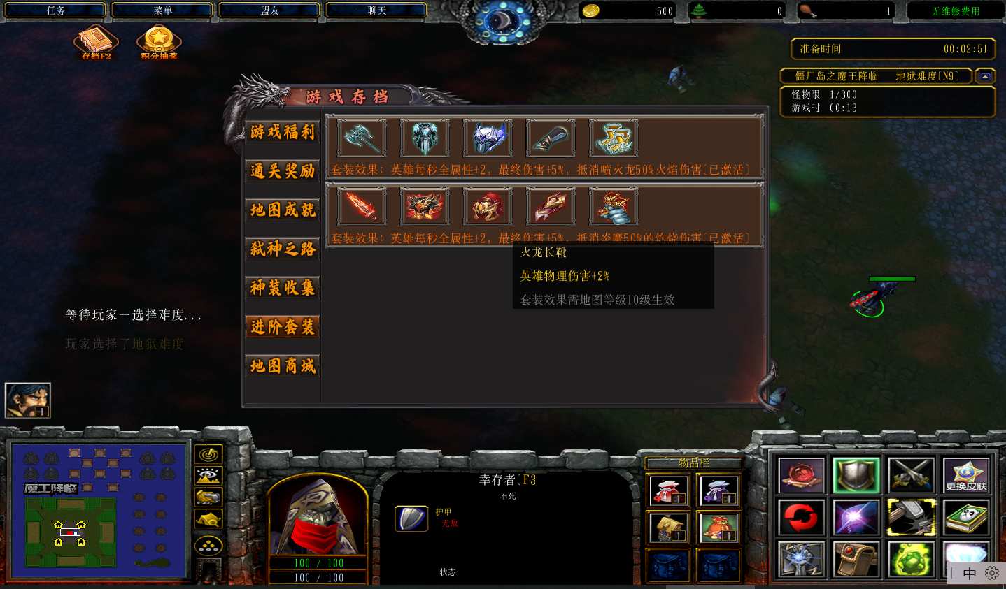 地图名字:僵尸岛之魔王降临1.1.13地图下载+全商城特权+全存档++无CD+指令功能