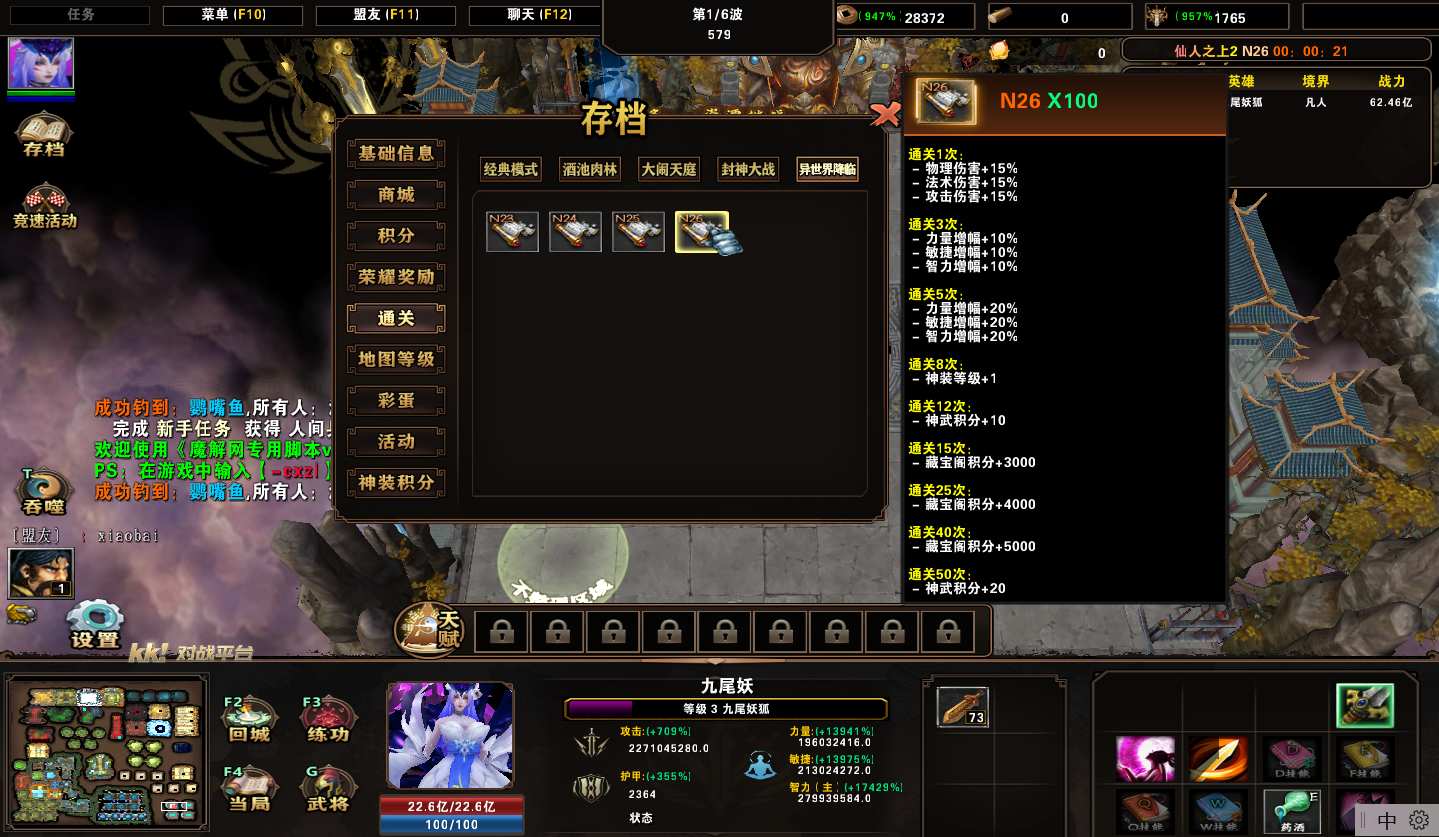 地图名字:仙人之上2 1.1.72地图下载+全商城特权+全存档+隐藏英雄+无CD+指令功能