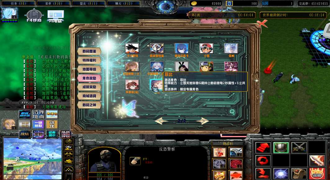 地图名字:数码新世界DW1.0.281地图下载+全商城特权+全存档+隐藏英雄+无CD+指令功能