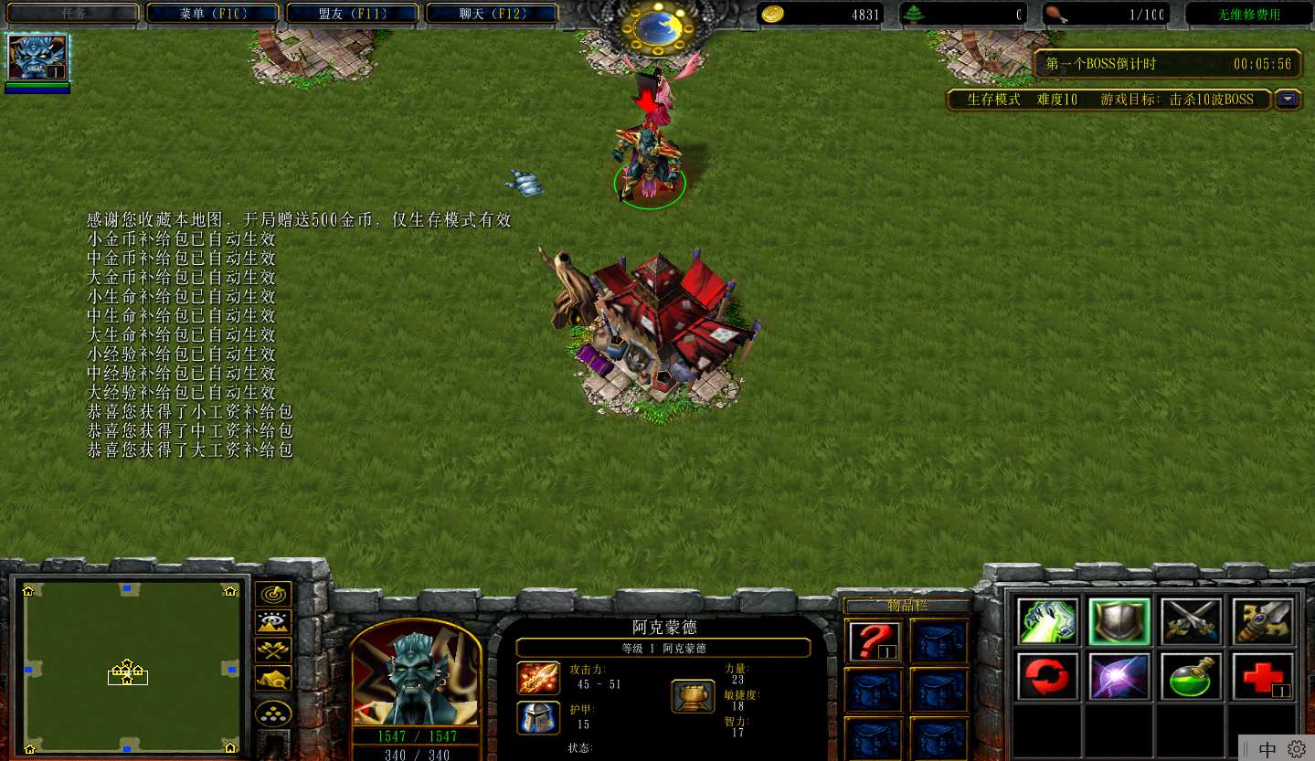 地图名字:经典魔兽生存1.0.31地图下载+无CD无限蓝P闪+商城特权+刷物品+指令功能